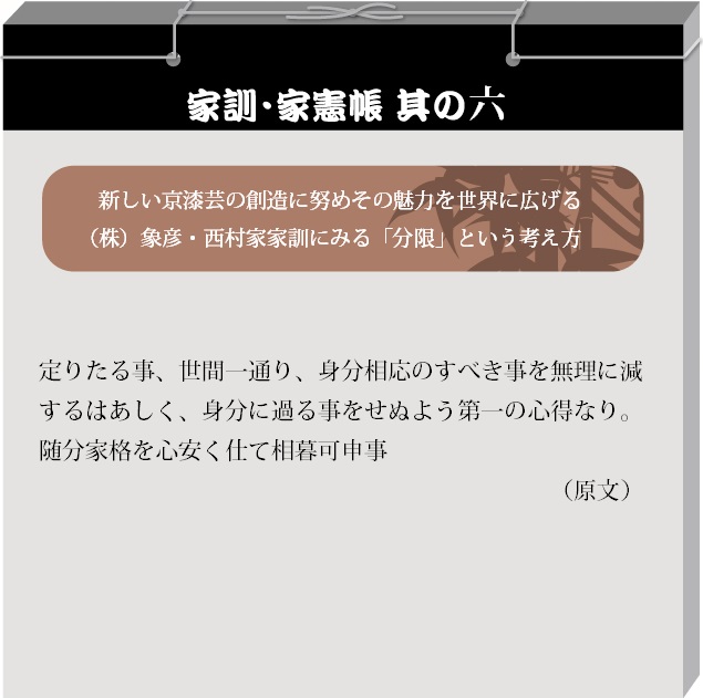 前のページ:其の六 「分限」が世界への原動力に 象彦・西村家の家訓